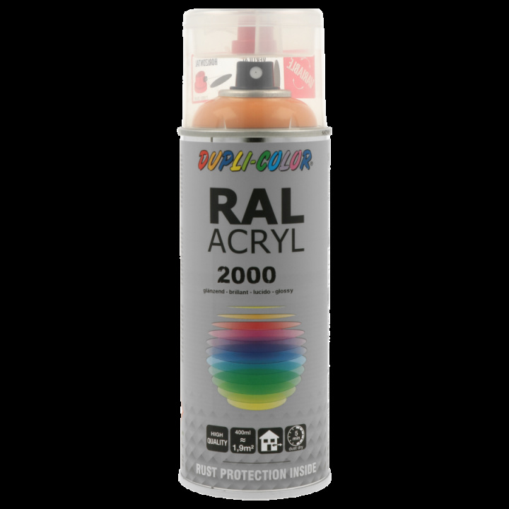 Akrylspray RAL 2000 Blank är en högkvalitativ akryllack i kulören Yellow Orange – en varm, livlig nyans ur RAL-systemets orangea färgskala. Sprayen är särskilt framtagen för att ge ett tåligt och dekorativt ytskikt på material som metall, aluminium, trä, glas, sten och olika plasttyper. Produkten passar både för inomhus- och utomhusbruk.